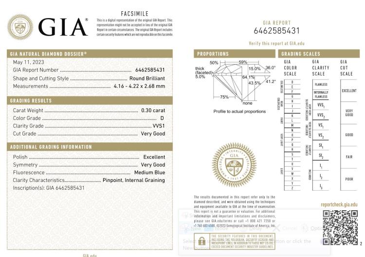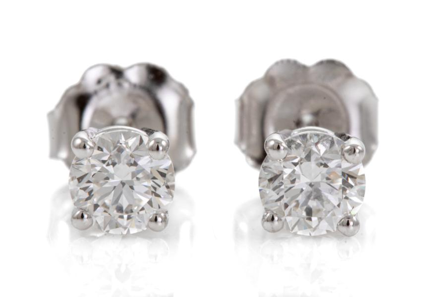 Diamond stud earrings with 2 round brilliant cut Natural Diamonds totalling 0.60cts (both with GIA summary reports graded as D VVS1 #2464679994, 6462585431