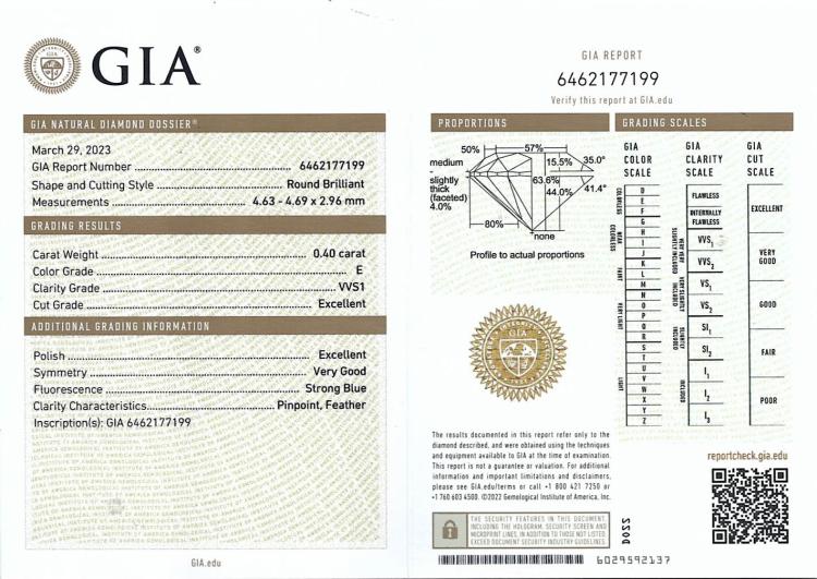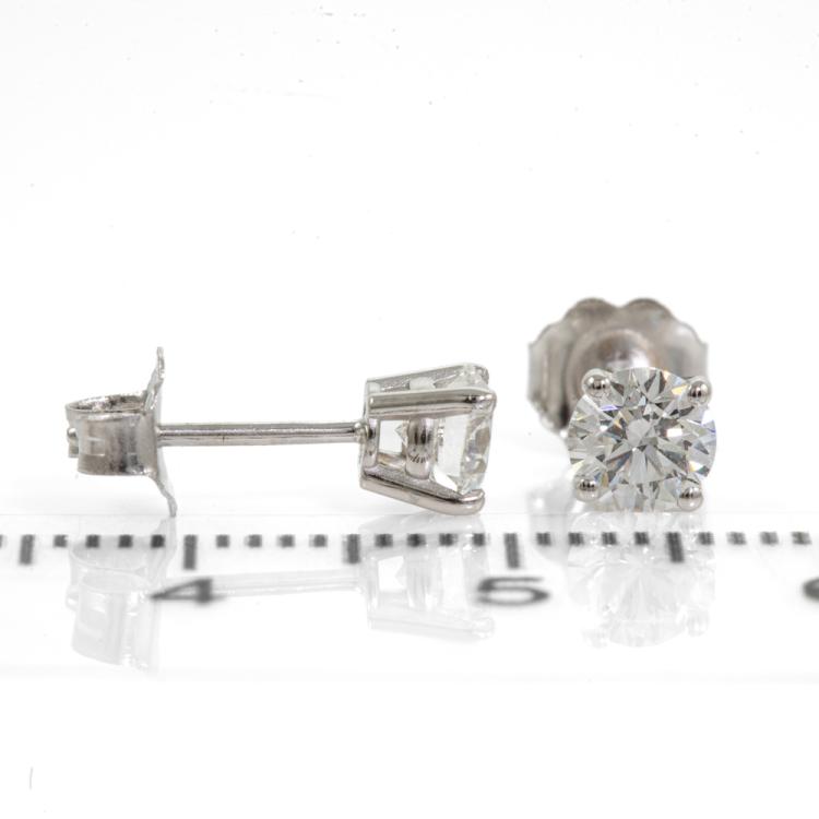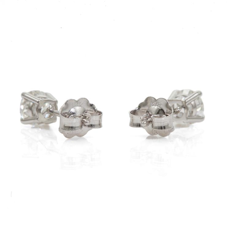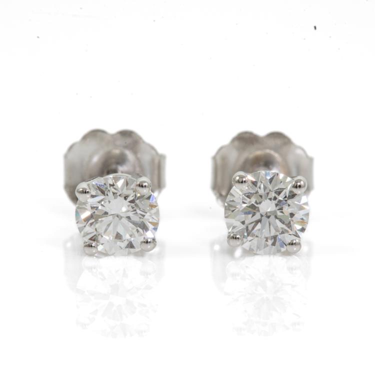Diamond stud earrings with 2 round brilliant cut Natural Diamonds totalling 0.80cts (with GIA Summary Reports graded as D VVS1 & E VVS1 #2467679124, 6462177199 ). 18ct white gold. Weight: 0.9g. (New)