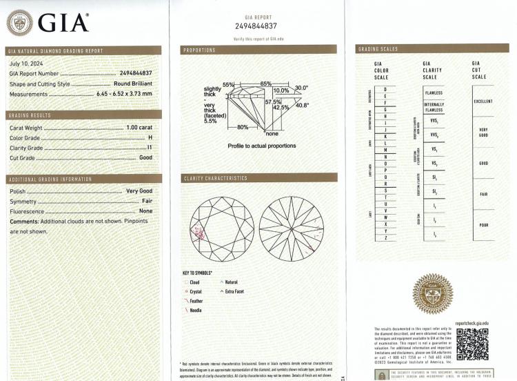 1.00ct Diamond Solitaire Ring GIA H P1