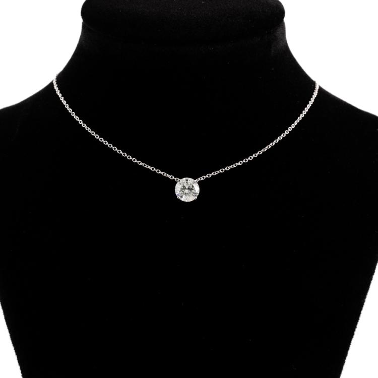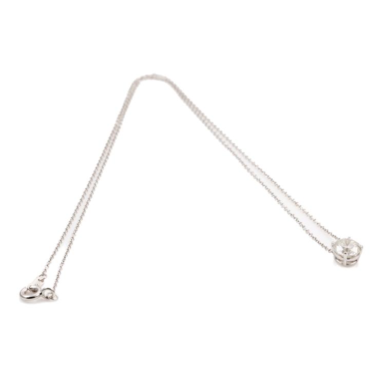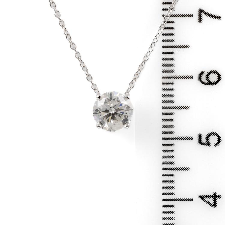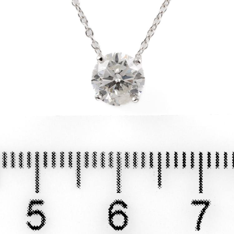 Diamond solitaire pendant with round brilliant cut Natural Diamond of 1.11ct (with GSL Summary Report graded as I P2 # AA65305-1 ). 18ct white gold with attached white gold chain. Length: 41cm. Weight 1.7g. (New)