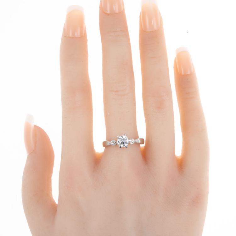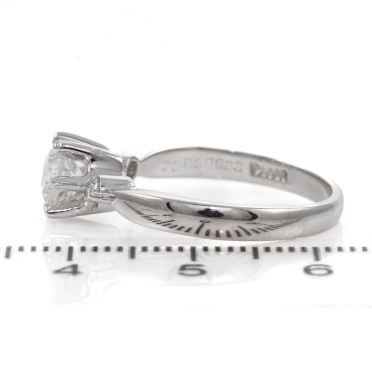 Diamond ring with centre round brilliant Natural Diamonds totalling 0.80cts (GSL graded as: H SI2, #AA68535/3) and 2 round Natural Diamonds totalling 0.23cts. Platinum 900. Ring size O. Band width: 3.2mm - 2.5mm. Weight: 6.2g. (Pre-owned)