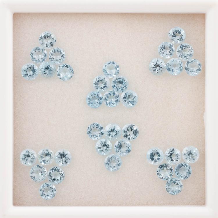 A loose parcel of 36 round Natural blue Topaz totalling 14.78ct. Measuring approximately 4.5mm. (As new)