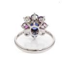 Sapphire ring with 9 round & oval shape multi-colour Ceylon Natural Sapphires totalling 2.38cts. 14ct white gold. Ring size K. Band width: 1.8mm. With GGTL Report #200892, note - 8 Sapphires are unheated and 1 blue Sapphire heated. Weight: 2.7g. (As new)