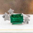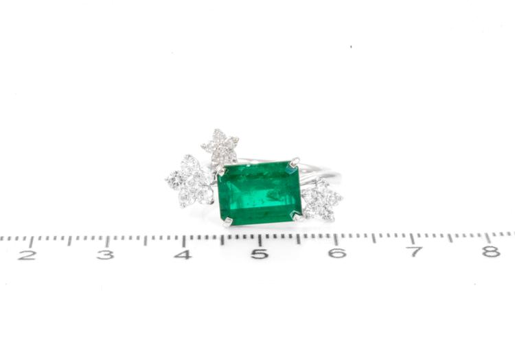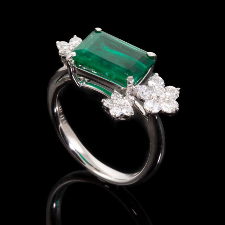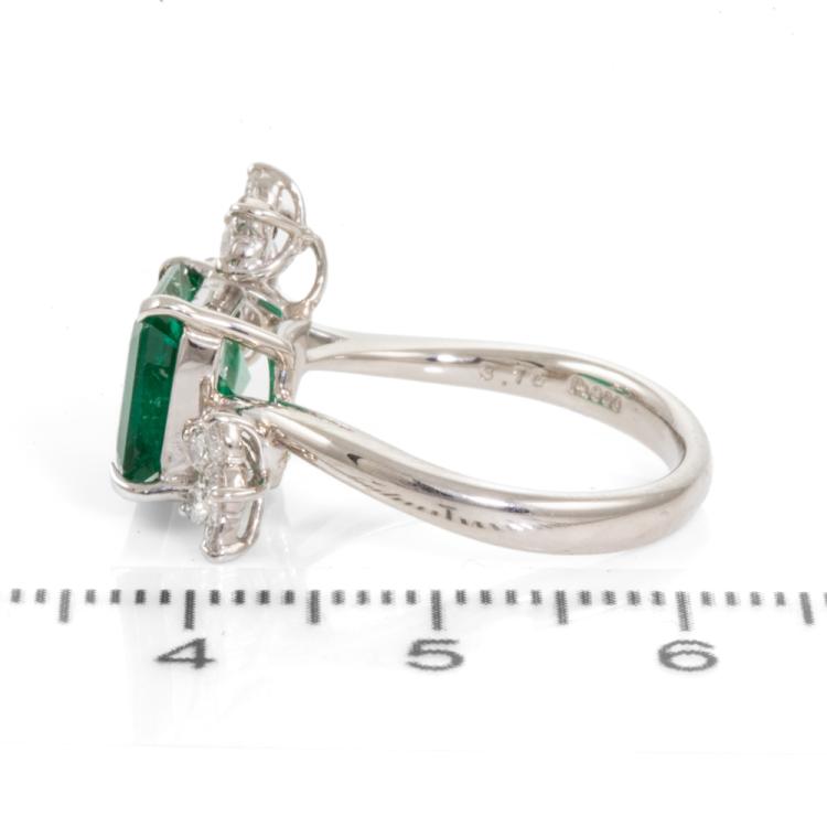 Emerald and Diamond ring with emerald cut vivid green Brazilian Natural Emerald of 3.16ct and round Natural Diamonds totalling 0.61cts (Estimated grading: G-H SI). Platinum-900. Ring size M. Weight: 7.1g. With GRS Certificate #GRS2023-018924. (Pre-owned)