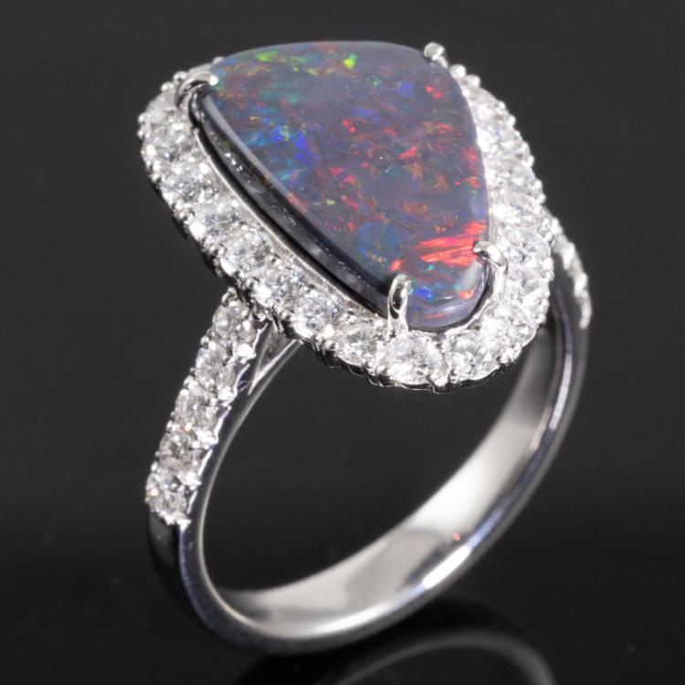 3.25ct Black Opal and Diamond Ring