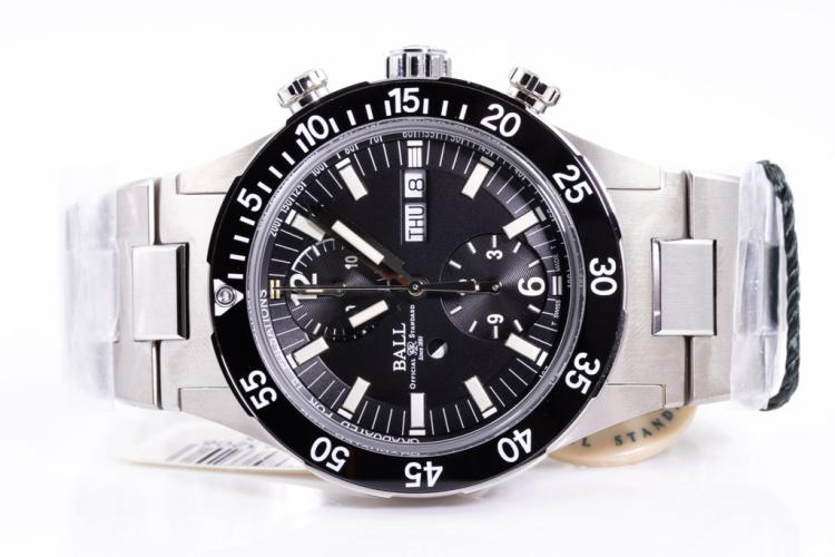 Ball Roadmaster Rescue Limited Edition of 1000 stainless steel and titanium automatic mens watch. Black chronograph dial, day and date, case diameter: 41mm, wrist size: 19.5cm, Swiss made. Ref# DC3030C-S-BK. With Ball stainless steel and titanium bracelet and clasp. With Ball Premium International Warranty Certificate card, Ball Limited Edition Certificate card and Ball box. 12 month FSA warranty. (New, Note: case and bracelet in original wrapping)