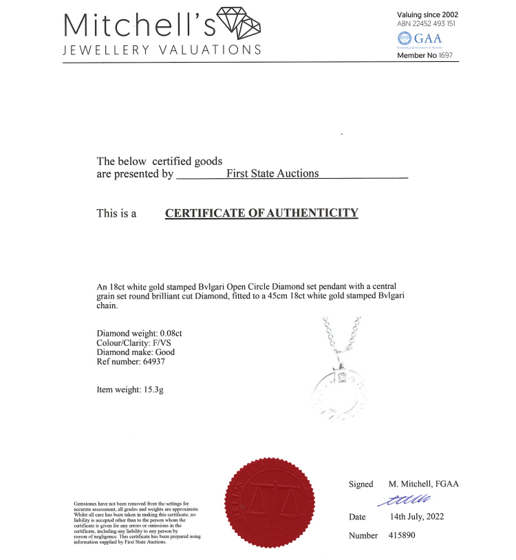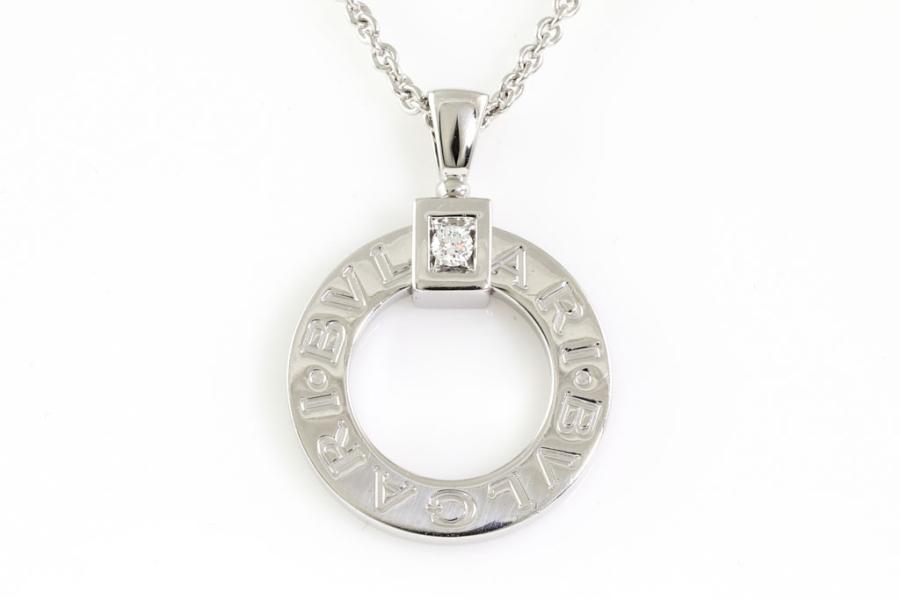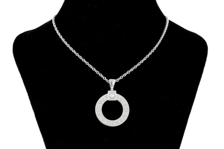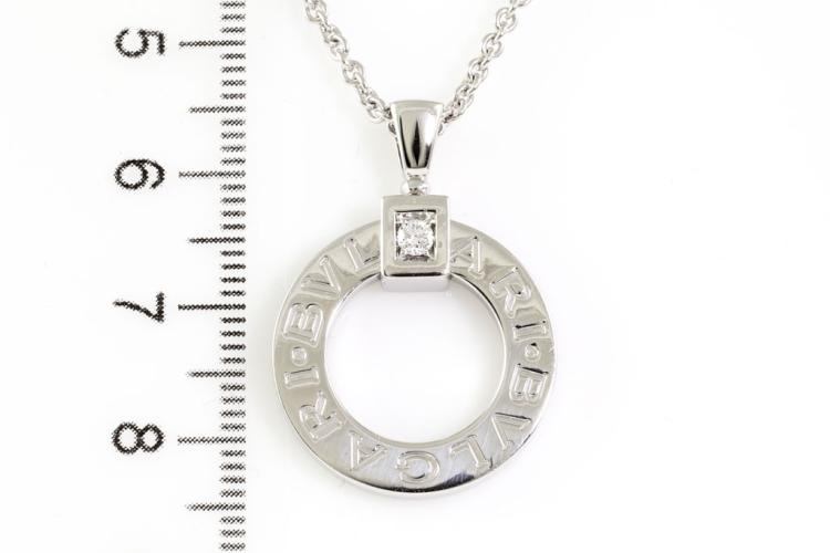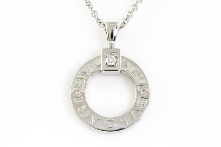Bvlgari Open Circle Diamond Pendant with a round Diamond of 0.08ct. 18ct white gold with 18ct white gold adjustable 45cm chain. Weight: 15.3g. With Certificate #415890. (Pre-owned)