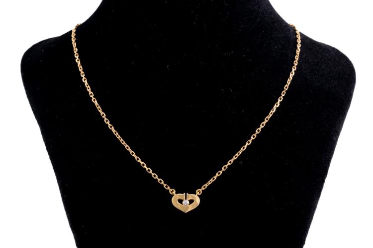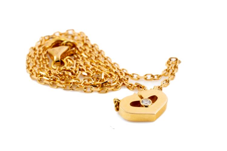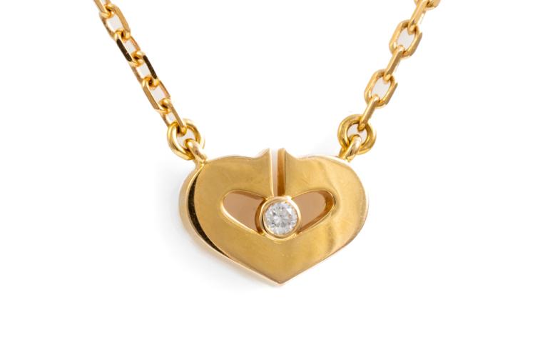 Cartier C Heart Diamond pendant with one Diamond of approximately 0.03ct. 18ct yellow gold. Length 39cm. Weight: 4.2g. (Pre-owned)