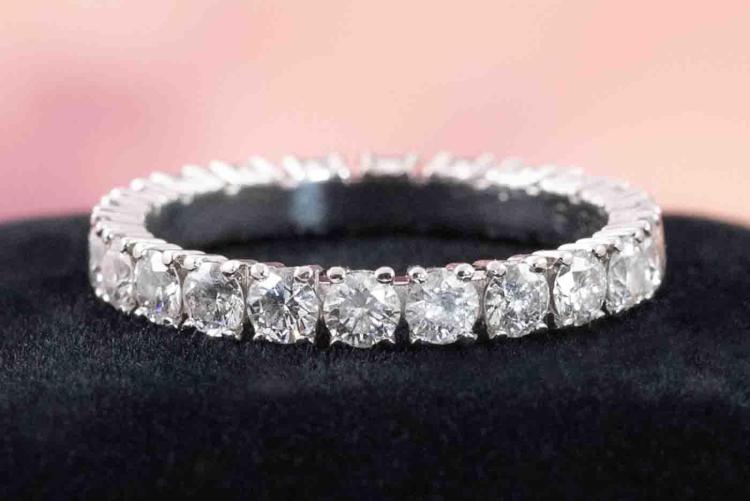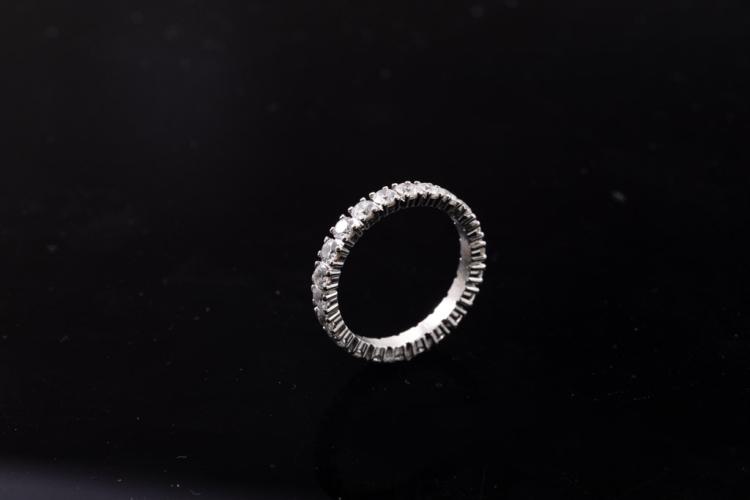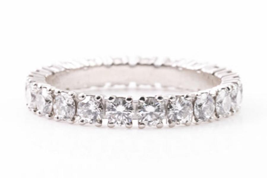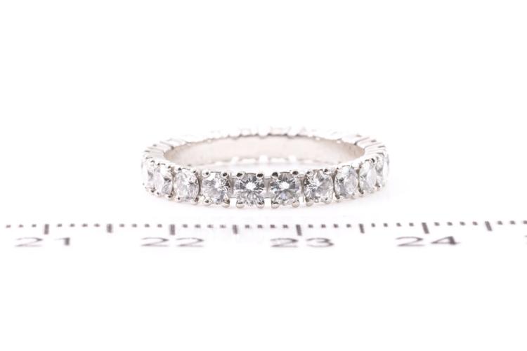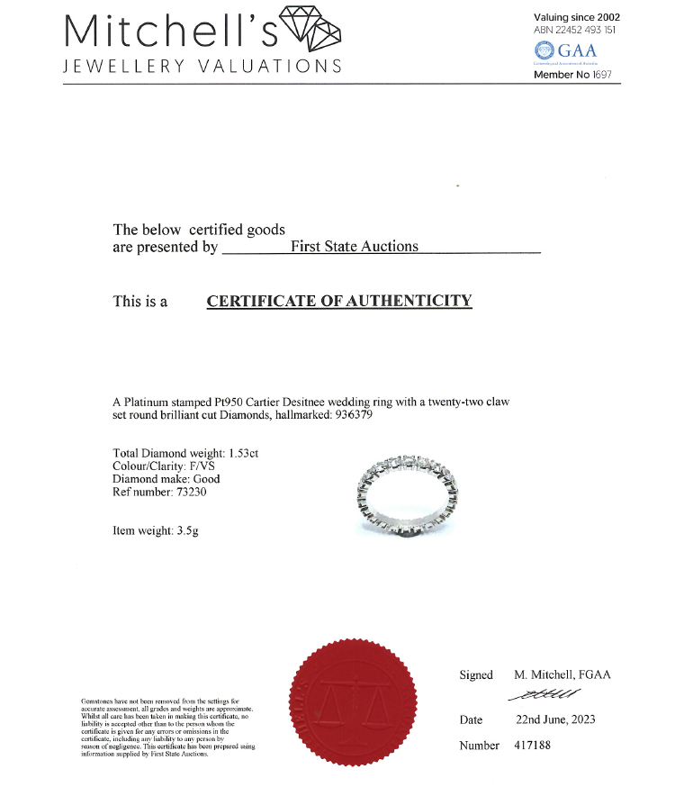 Cartier Destinee Wedding ring with 22 round Diamonds totalling 1.53cts (Estimated grading: F VS). Width: 3.2mm. Cartier stamped size: 52, L½ - cannot be resized. Platinum-950. Weight: 3.5g. With Certificate #417188. (Pre-owned)