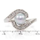 Pearl and Diamond ring with a grey cultured Pearl of 7mm and round Natural Diamonds totalling approximately 0.11cts. 14ct white gold. Ring size P1/2. Band width: 1.9mm-2.4mm. (not light scratches on band). Weight: 4g. (Pre-owned)