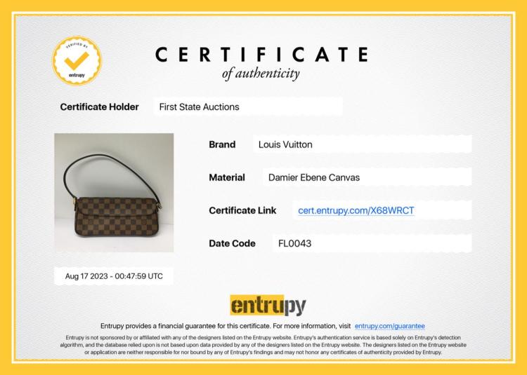 Louis Vuitton Recoleta in Damier Ebene coated shoulder bag. Featuring brown leather trim, gold-toned hardware, frontal flap with magnetic closure. It opens to a red microfiber lining interior with a patch pocket. Approximate dimensions 25.5.cm(L) x 11.5cm(H) x 7cm(D) and 20cm handle drop. With Entrupy Certificate of Authenticity. (Pre-owned)