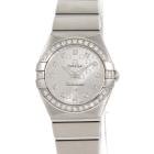 Omega Constellation stainless steel quartz ladies watch. Silver dial, Diamond indicators and set bezel, case diameter: 24mm, wrist size: 15.5cm, Swiss made. Ref# 123.15.24.60.52.001. With Omega stainless steel bracelet and clasp. With Certificate of Authenticity, Undated Omega International warranty card, Omega Pictograms card, Omega Precious stones Certificate card and Omega box. 3 month FSA warranty (Pre-owned)