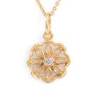 Pandora Radiance filigree floral motif pendant with a round Natural Diamond of approximately 0.09ct. 14ct yellow gold with 14ct yellow gold 45cm Pandora chain. Motif size: 15.7mm. Weight: 6.5gm. (Pre-owned)