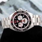 TAG Heuer Formula 1 stainless steel quartz mens watch. Black chronograph dial, date, case diameter: 43mm, wrist size: 18.5cm, Swiss made. Ref# CAZ101V. With TAG Heuer stainless steel bracelet and clasp. With Certificate of Authenticity. 3 month FSA warranty (Pre-owned)