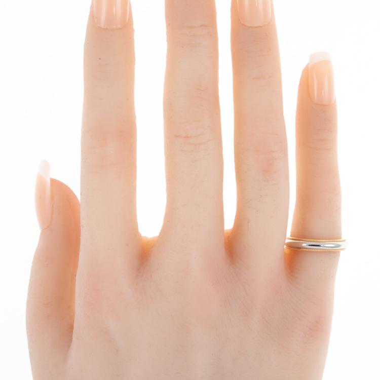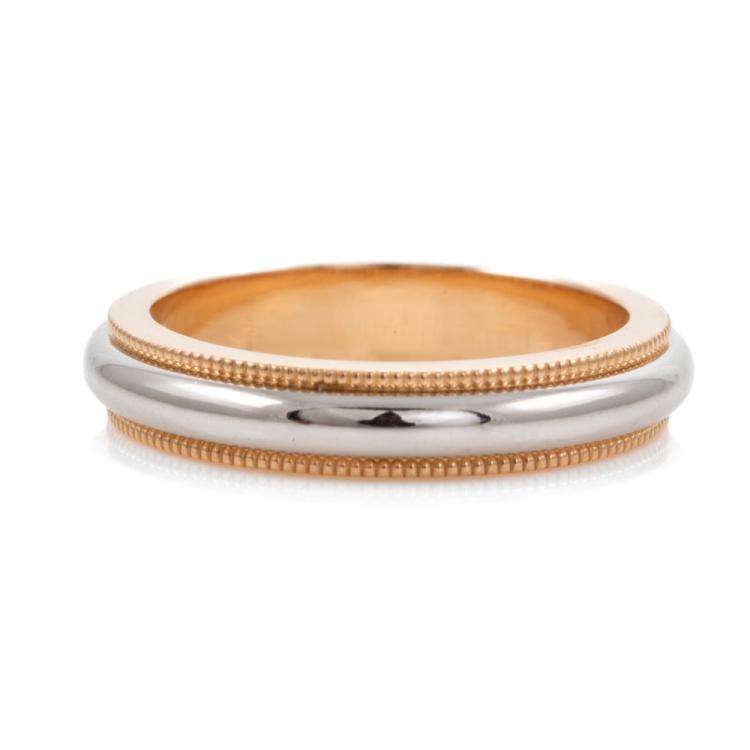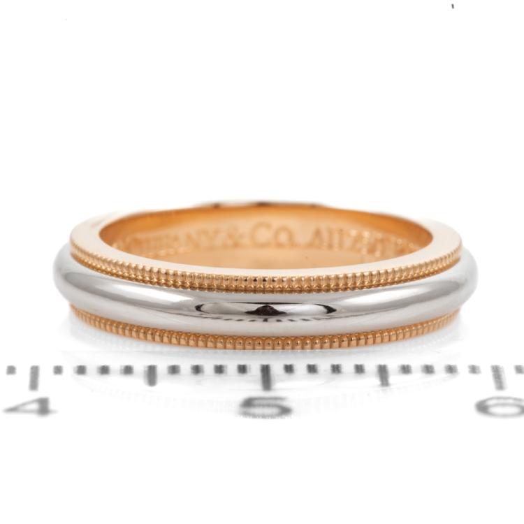 Tiffany & Co. Tiffany Togethers Milgrain Band ring. 18ct rose gold and Platinum 950. Ring size: H - ring resize is not recommended. Band width: 3.5mm. Weight: 5.2g. (Pre-owned)